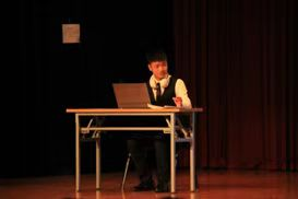 看了许多歌舞,IT部给我们带来小品---《那一夜》。从诙谐幽默的夫妻对话到刚健有力中华武术,观众席的欢笑与尖叫,是对IT部节目的最大肯定。