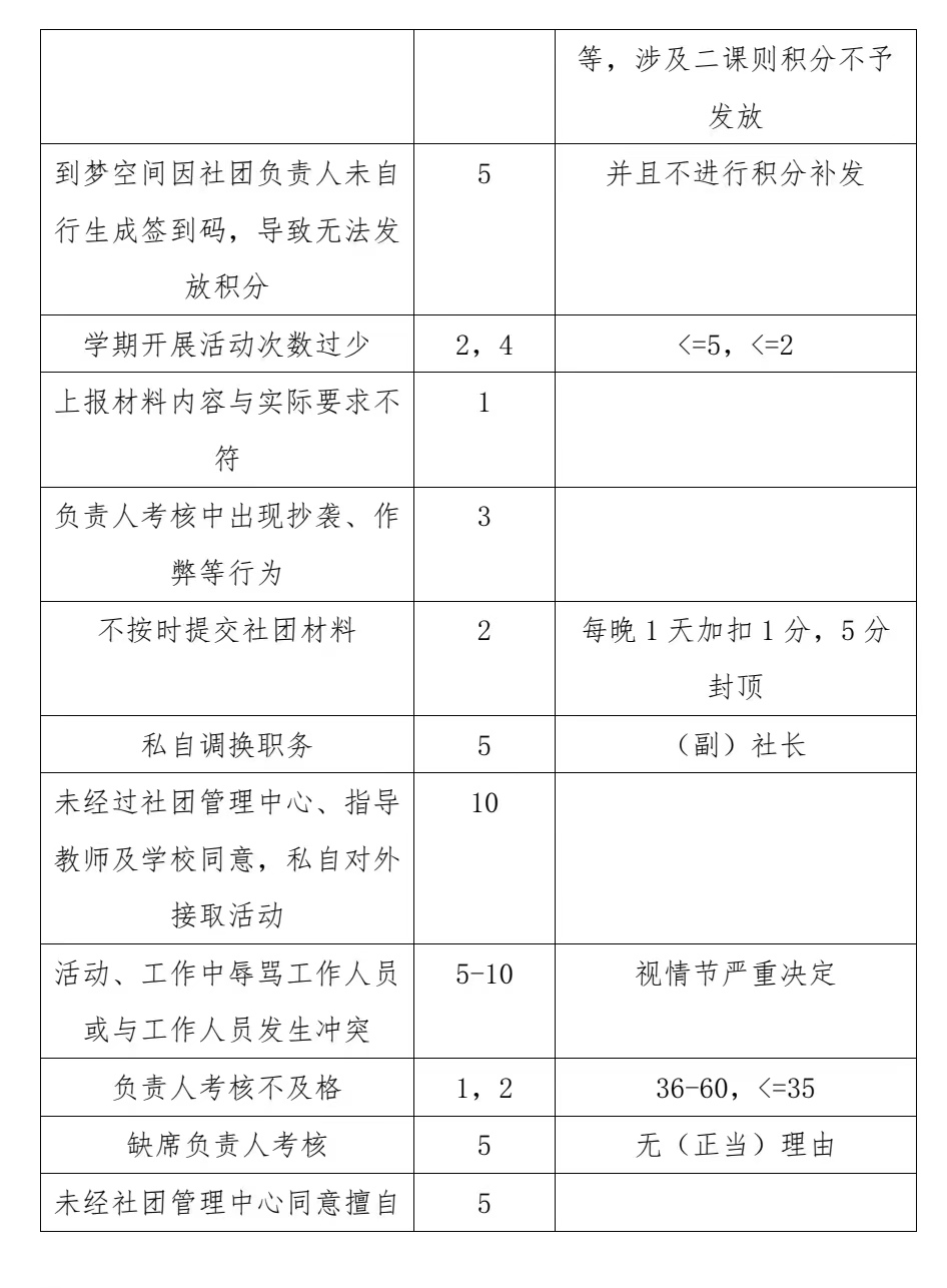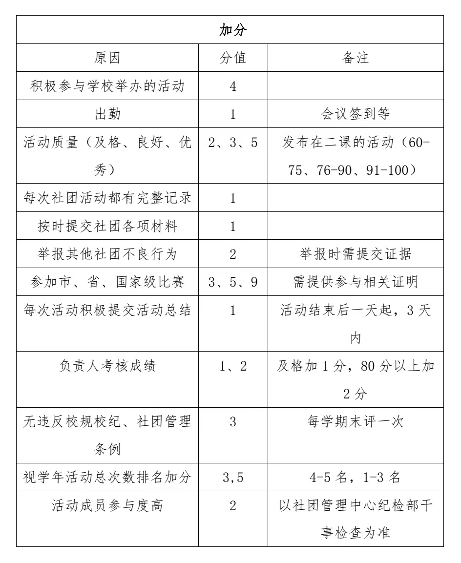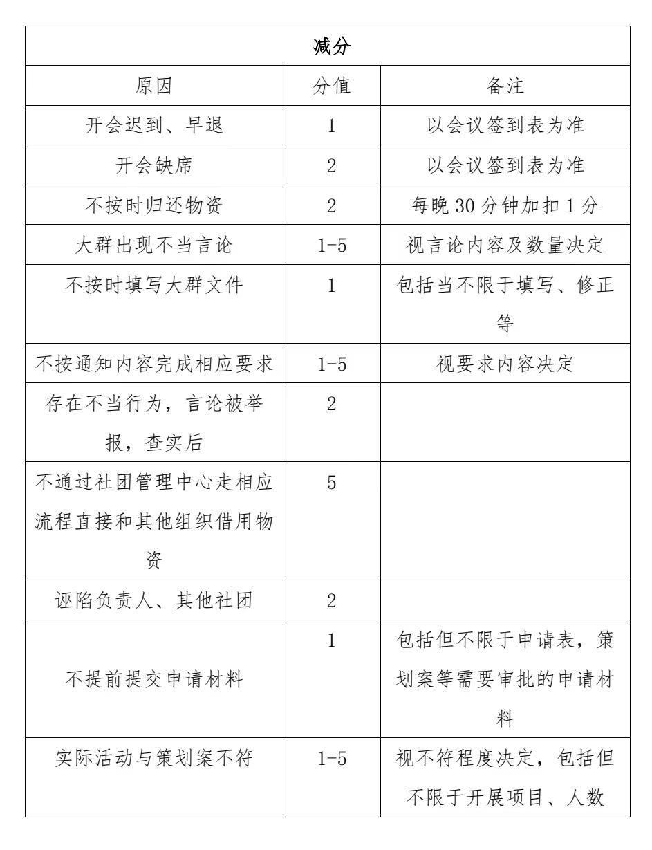 2.每月 15 号发布社团月度得分,不及格的社团自行整改;