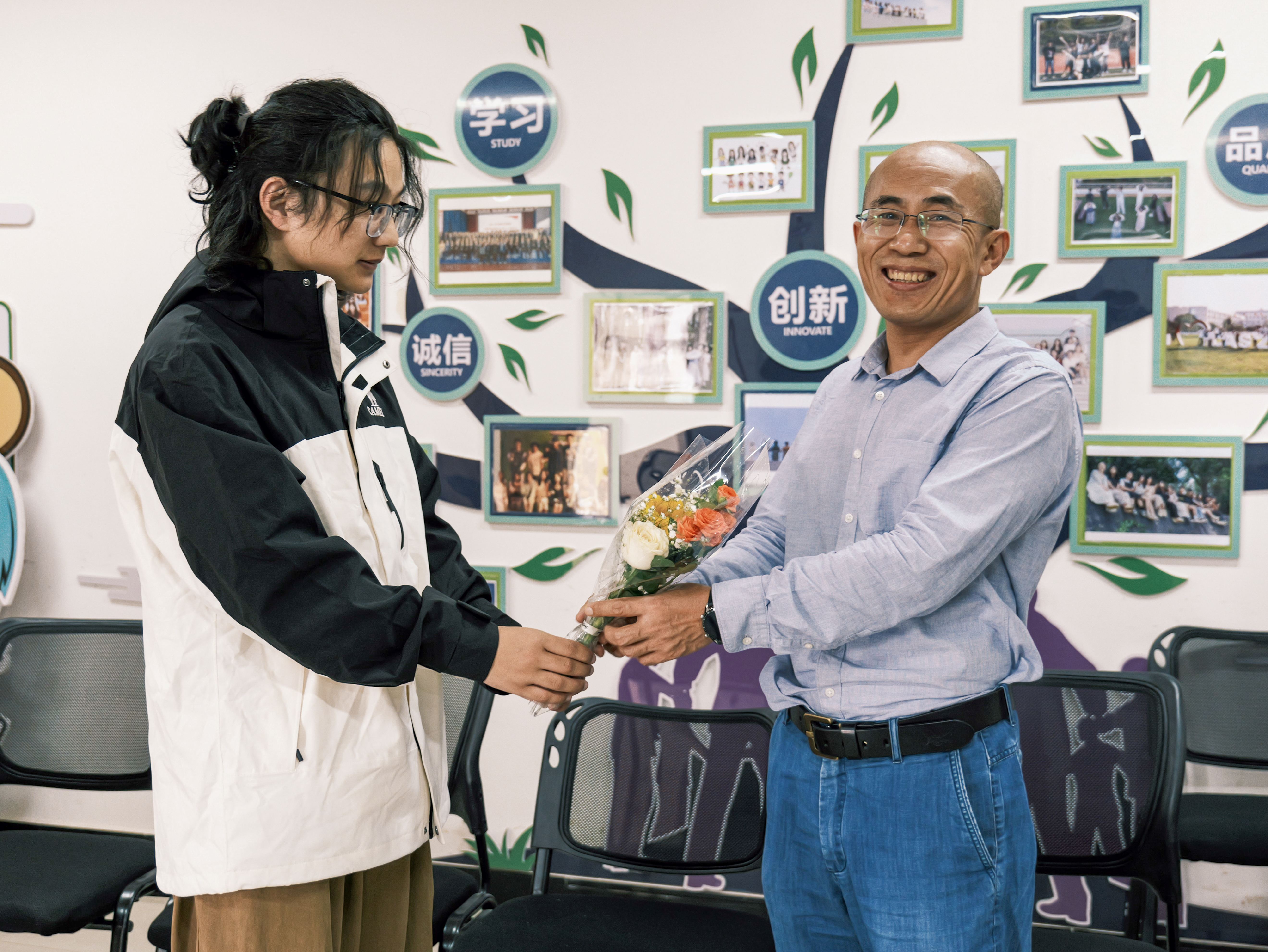 在这个金秋送爽、硕果累累的季节,我们迎来了第40个教师节,为了表达对教师辛勤耕耘、无私奉献的崇高敬意,校团委学生会的组织学生代表为全体老师精挑细选了一束束鲜花,为辛勤工作的老师们送去最真挚的节日祝福。