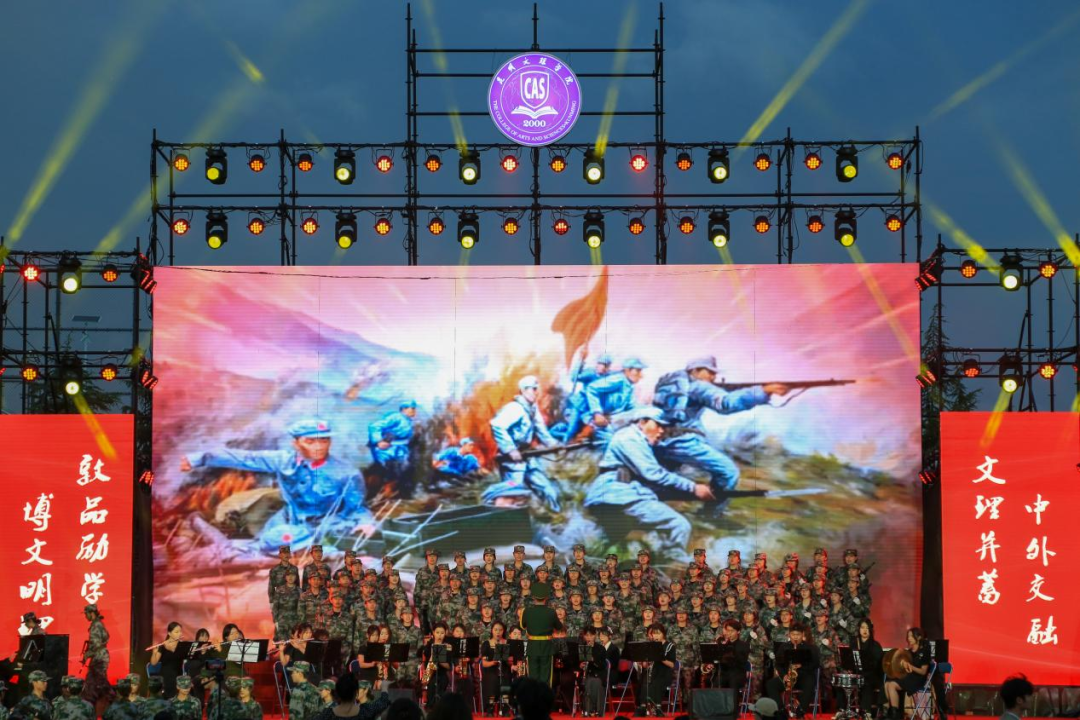 一首由国防教育学生委员会与校管乐团、舞蹈团带来的《游击队之歌》,拉开了比赛的序幕。各参赛队用歌声唱响澎湃旋律,展现新时代、新征程上文理青年学子的精神风貌。《地道战》《红旗飘飘》《保卫黄河》《我爱你中国》《共筑中国梦》《紫荆花盛开》《山笑水笑人欢笑》《独龙哟啦》,一首首经典与民族歌曲交织,带领我们重温人民英雄大无畏的革命英雄主义精神,展现出青年们昂扬的斗志和奋发的姿态,唱响云南少数民族音乐的艺术特色。