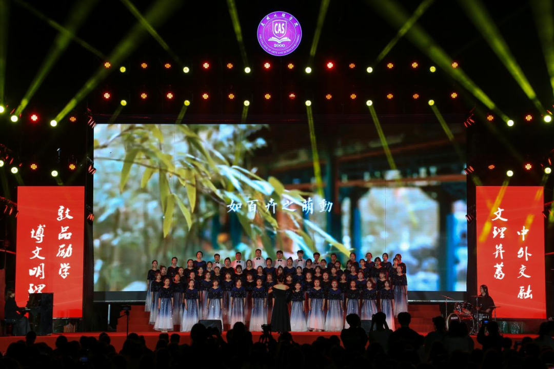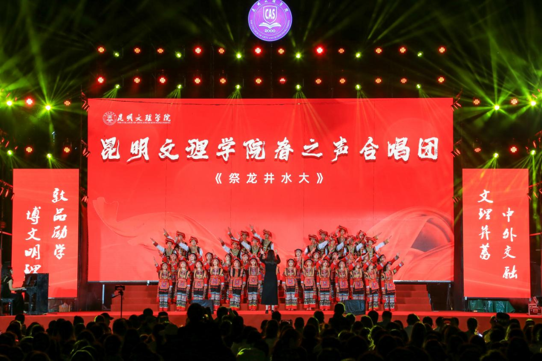 校话剧团演绎的话剧《桂香满途》,以时代楷模、全国优秀教师张桂梅校长为原型,讲述她带领华坪女子高级中学的女孩们勇敢逐梦的励志故事,以坚定的信念和无私的奉献,用大爱筑起师德丰碑。由教师团支部与校合唱团师生代表演唱的《有我》——一句“承风骨亦有锋芒,有梦则刚”向五四先驱致以最崇高的敬意,诉说着对青春的无限热爱以及对祖国的赤胆忠诚。最后,一首取材于云南红河石屏彝族的海菜腔音乐作品《祭龙井水大》,由昆明文理学院春之声合唱团演唱,生动地展现出了彝族人在大自然中与天地对话的古老场面。